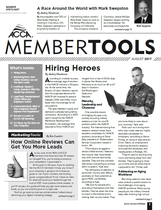 MemberTools is ACCA's quarterly newsletter for members only. Each issue is jam-packed with real resources and knowledge that you can put to use in your business right away. Starting February 2017, MemberTools will be mailed to each member company and made available online.