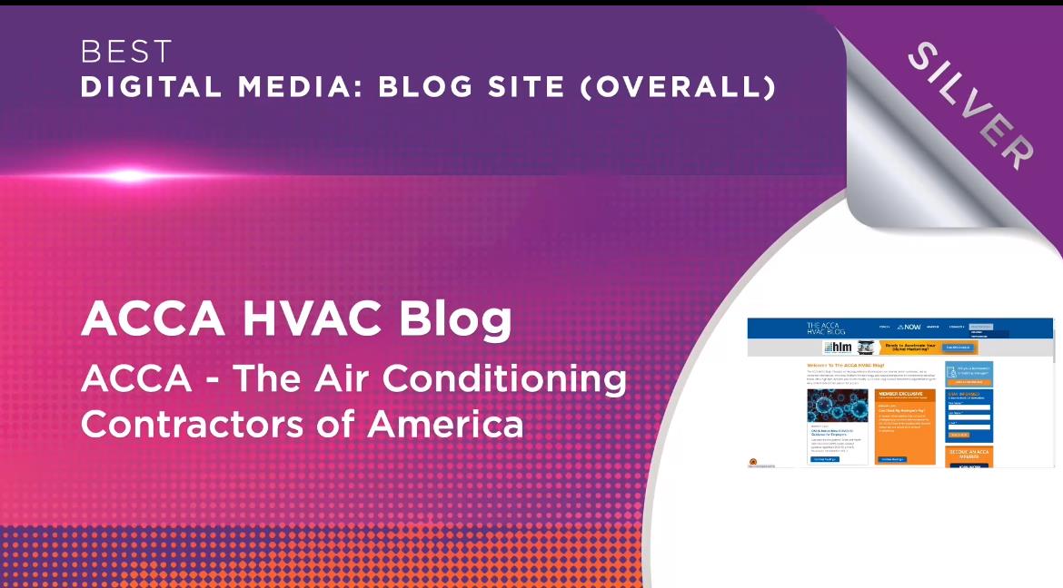Alexandria, VA (June 17, 2021) – The Air Conditioning Contractors of America (ACCA) is proud to announce that the ACCA HVAC Blog has won the Silver Medal in the Digital Media: Overall Blog Site category at the Software & Information Industry Association's (SIIA) 41st Annual AM&P Network Associations Council EXCEL Awards competition.